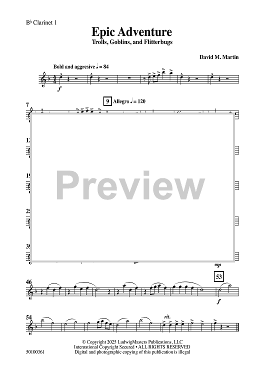 "Epic Adventure - Bb Clarinet 1" Sheet Music by David M. Martin