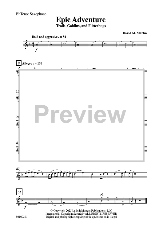 Digital Sheet Music for Epic Adventure - Bb Tenor Saxophone by David M. Martin scored for Concert Band; id:508725