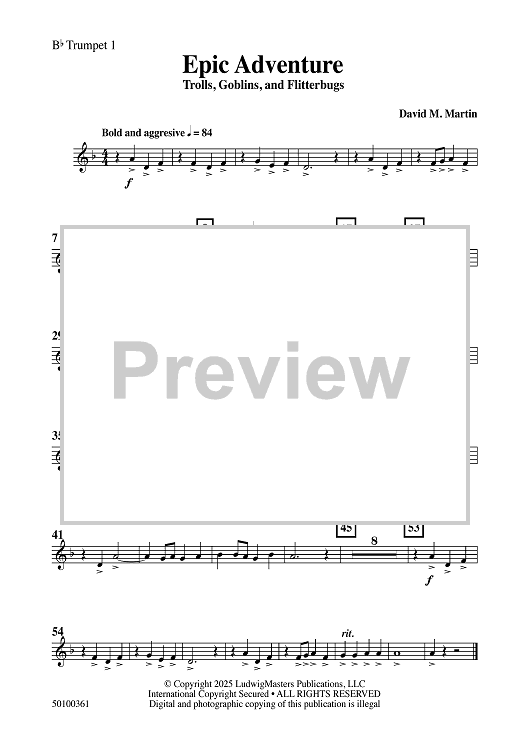 "Epic Adventure - Bb Trumpet 1" Sheet Music by David M. Martin