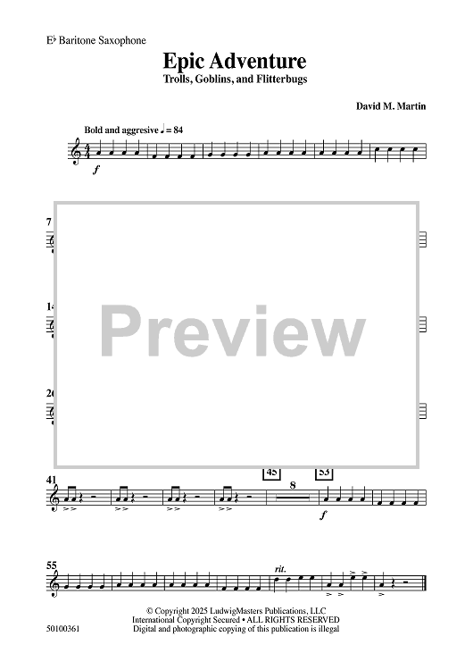 Digital Sheet Music for Epic Adventure - Eb Baritone Saxophone by David M. Martin scored for Concert Band; id:508726