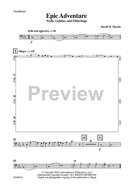 Digital Sheet Music for Epic Adventure - Trombone by David M. Martin scored for Concert Band; id:508730