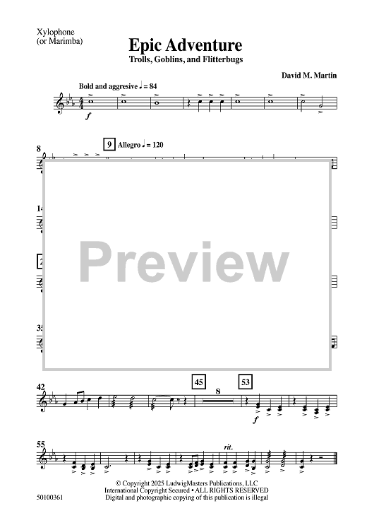 Digital Sheet Music for Epic Adventure - Xylophone or Marimba by David M. Martin scored for Concert Band; id:508736