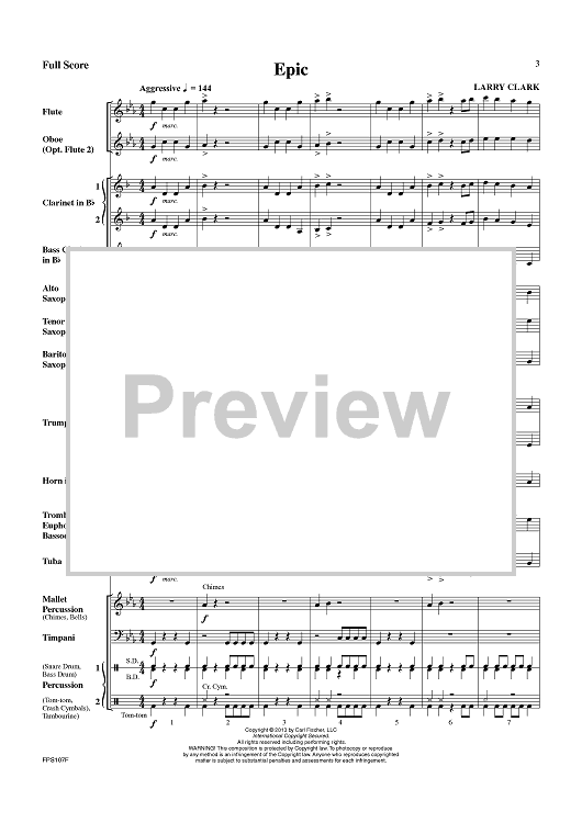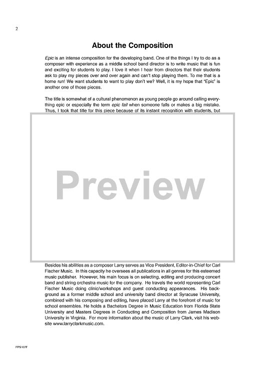 Digital Sheet Music for Epic - Score by Larry Clark scored for Concert Band; id:435885