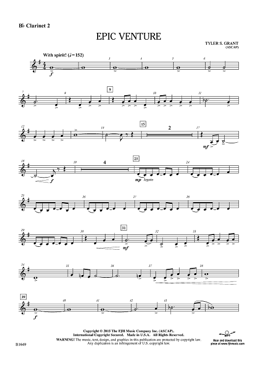 "Epic Venture - Bb Clarinet 2" Sheet Music by Tyler S. Grant