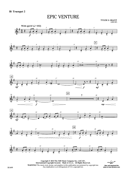 Digital Sheet Music for Epic Venture - Bb Trumpet 2 by Tyler S. Grant scored for Concert Band; id:455383