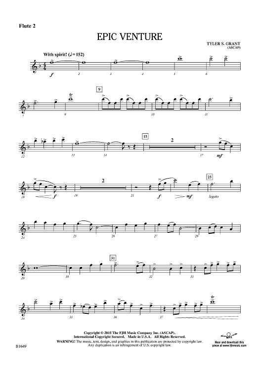 Digital Sheet Music for Epic Venture - Flute 2 by Tyler S. Grant scored for Concert Band; id:455373