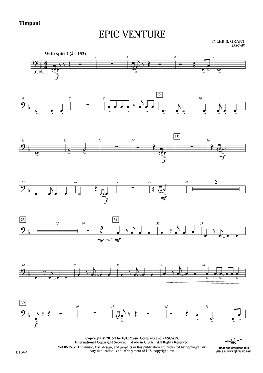 "Epic Venture - Timpani" Sheet Music by Tyler S. Grant