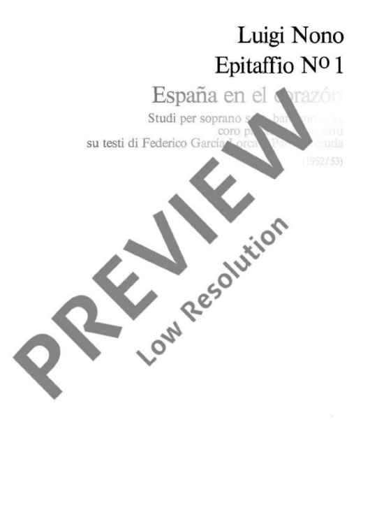 Digital Sheet Music for Epitaffio 1, 2 e 3 auf Federico García Lorca - Full Score by Luigi Nono scored for Soli, Small Mixed Choir And Instruments (1) - Flute And Small Orchestra (2) - Speaker, Spreaking Choir, Mixed Choir And Orchestr; id:471252