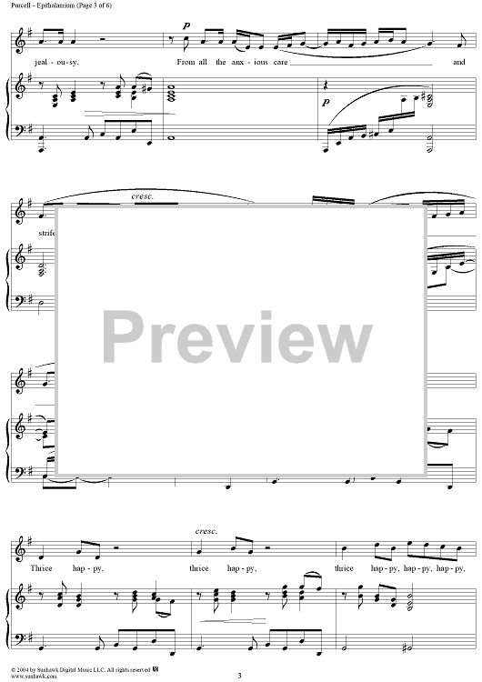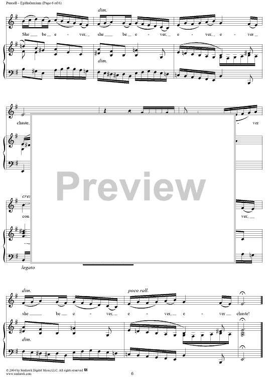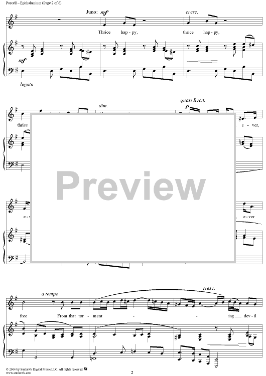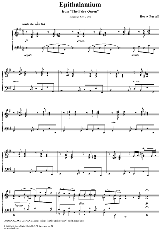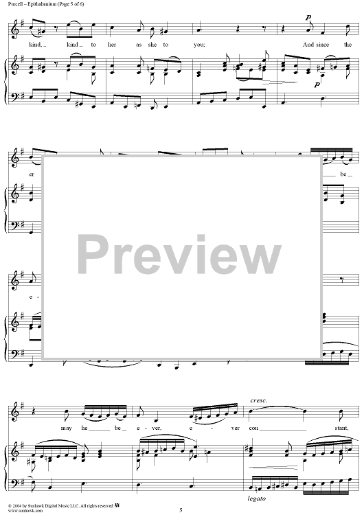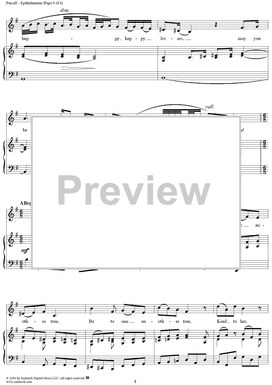 Digital Sheet Music for Epithalamium by Henry Purcell scored for Voice/Piano; id:303510
