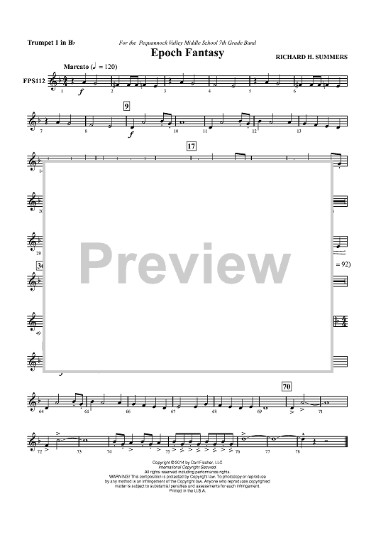 Digital Sheet Music for Epoch Fantasy - Trumpet 1 in Bb by Richard Summers scored for Concert Band; id:453594