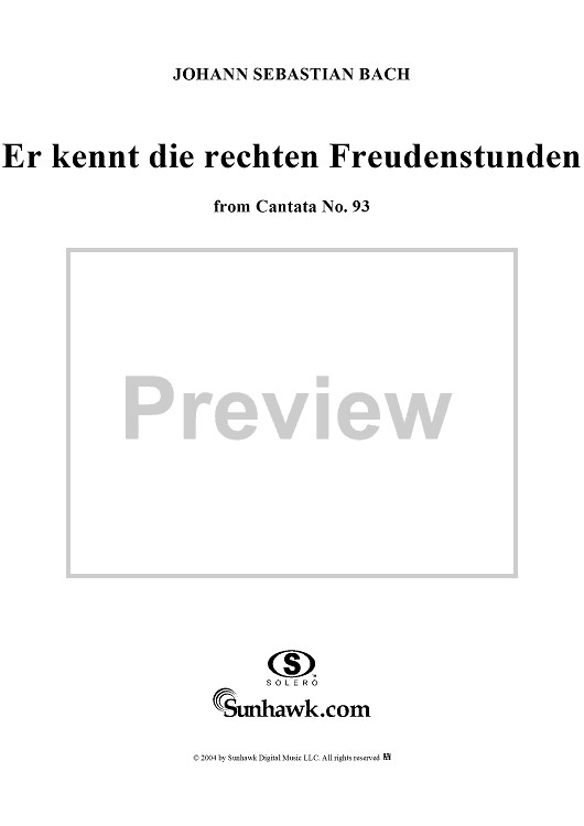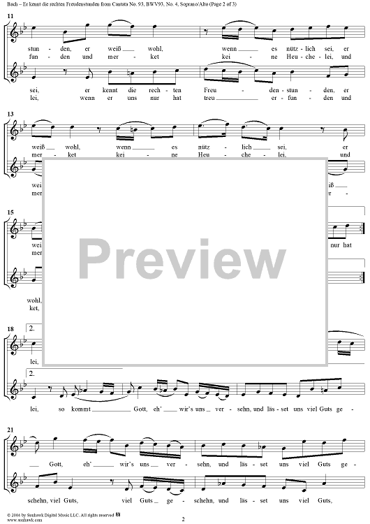 Digital Sheet Music for "Er kennt die rechten Freudenstunden", Duet, No. 4 from Cantata No. 93: "Wer nur den lieben Gott lässt walten" - Soprano and Alto by Johann Sebastian Bach scored for Soprano, Alto, Violin and Piano or Organ; id:303771
