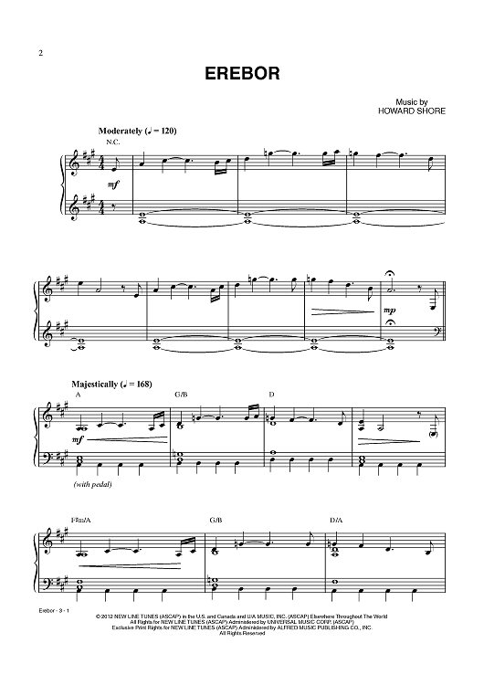 Digital Sheet Music for Erebor by Howard Shore scored for Piano Solo; id:433845