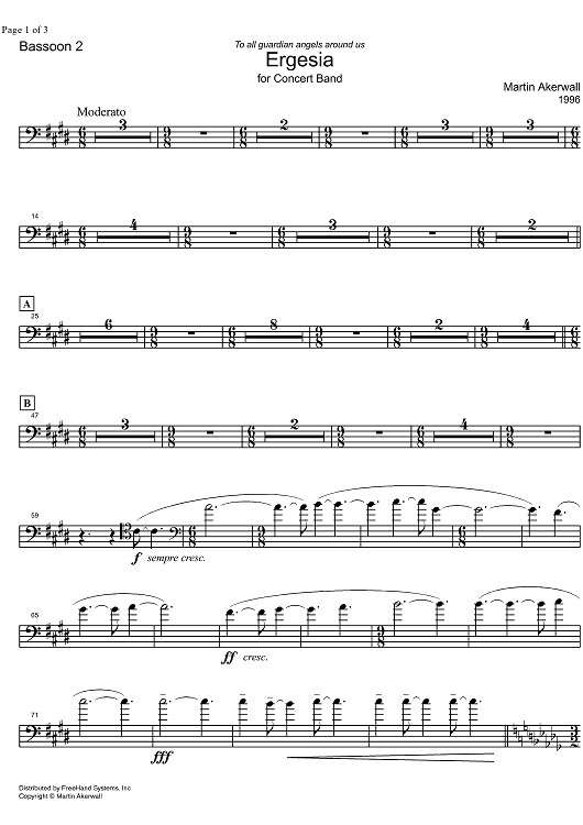 Digital Sheet Music for Ergesia - Bassoon 2 by Martin Akerwall scored for Concert Band; id:328176