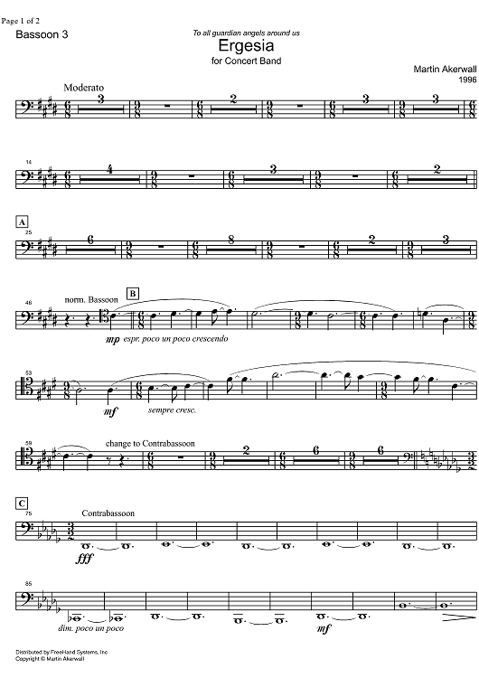Digital Sheet Music for Ergesia - Bassoon 3 by Martin Akerwall scored for Concert Band; id:328177