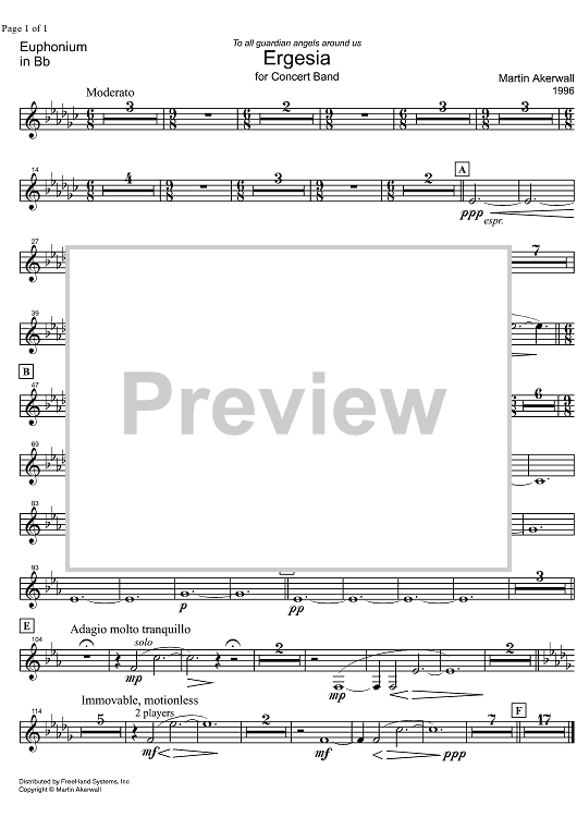 Digital Sheet Music for Ergesia - Euphonium by , Martin Akerwall scored for Concert Band; id:328153