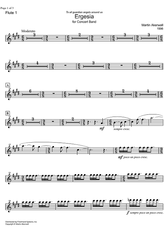 Digital Sheet Music for Ergesia - Flute 1 by Martin Akerwall scored for Concert Band; id:328158