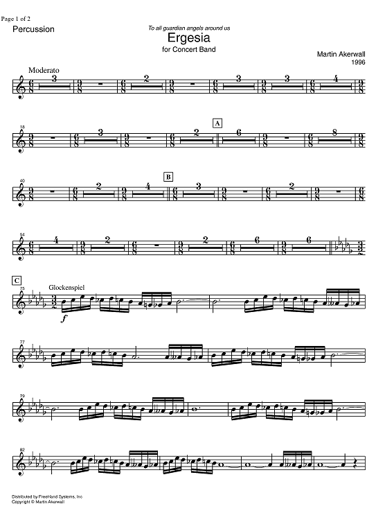 Digital Sheet Music for Ergesia - Percussion by Martin Akerwall scored for Concert Band; id:328156