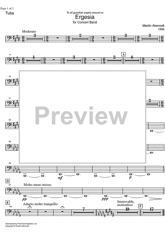 Digital Sheet Music for Ergesia - Tuba by , Martin Akerwall scored for Concert Band; id:328154