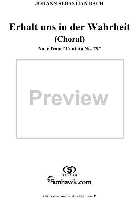Digital Sheet Music for "Erhalt uns in der Wahrheit" (choral), No. 6 from Cantata No. 79 (BWV79) by Johann Sebastian Bach scored for Four-part Mixed Chorus/Piano; id:276664
