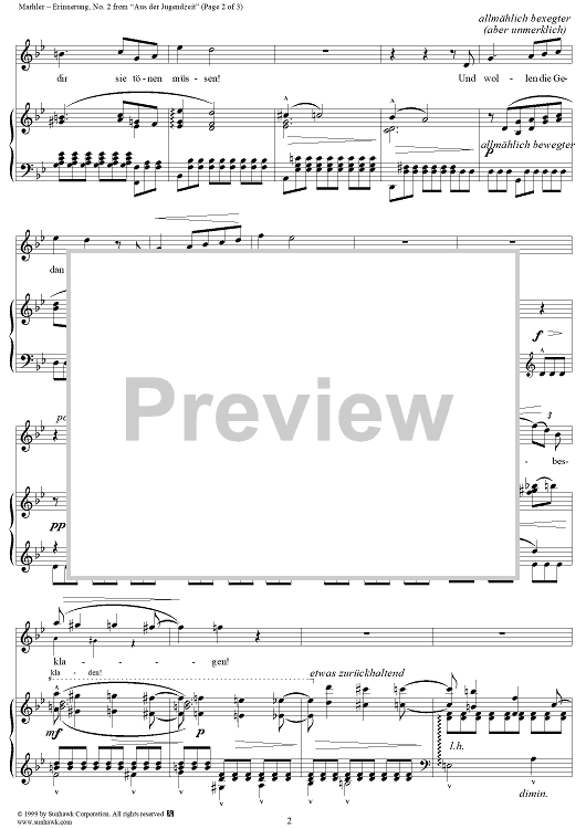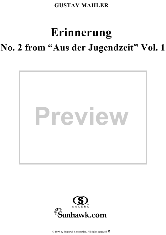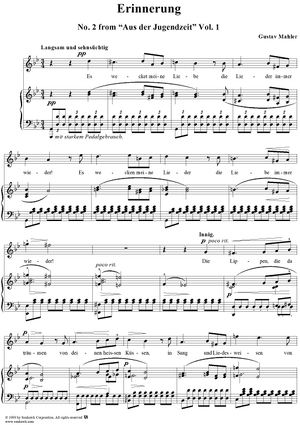 Digital Sheet Music for Erinnerung - No. 2 from "Aus der Jugendzeit" Vol. 1 by Gustav Mahler scored for Voice/Piano; id:261932