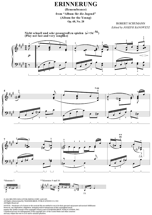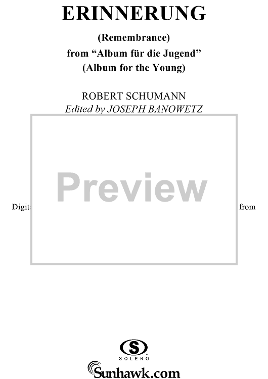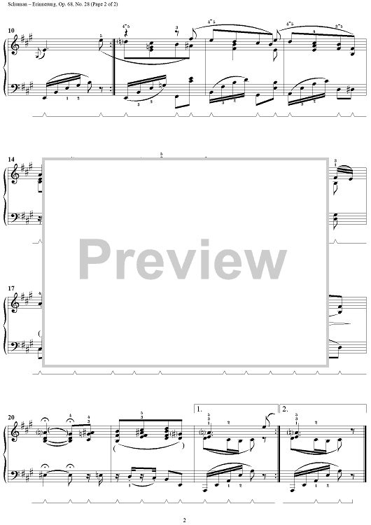 Digital Sheet Music for Erinnerung, Op. 68, No. 28 by Robert Schumann scored for Piano Solo; id:297427