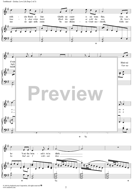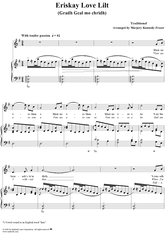 Digital Sheet Music for Eriskay Love Lilt, Gradh geal mo chridh by Marjory Kennedy-Fraser, Traditional scored for Piano/Vocal; id:259811