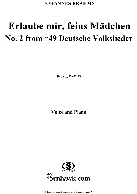"Erlaube mir, feins Mädchen - No. 2 from "49 Deutsche Volkslieder", Book 1, WoO 33" Sheet Music by Johannes Brahms