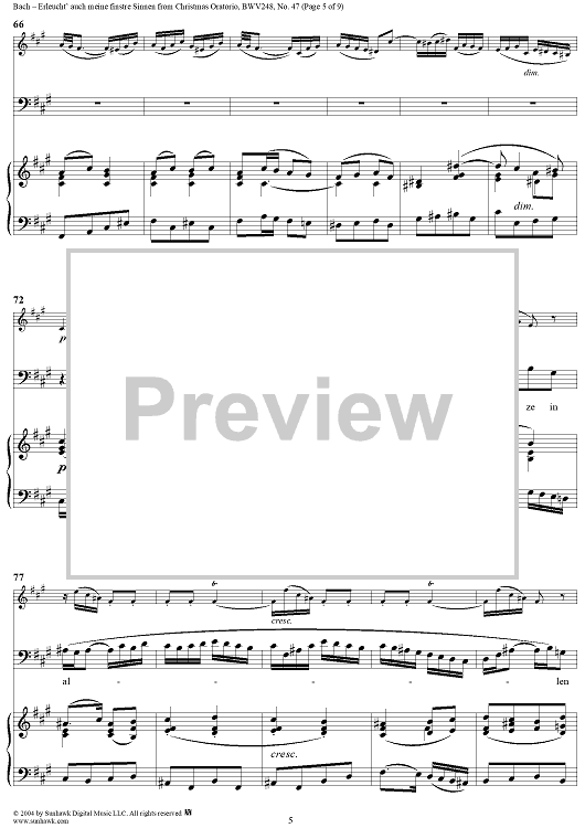 ""Erleucht' auch meine finstre Sinnen", Aria, No. 47 from Christmas Oratorio, BWV248 - Piano Score" Sheet Music by Johann Sebastian Bach