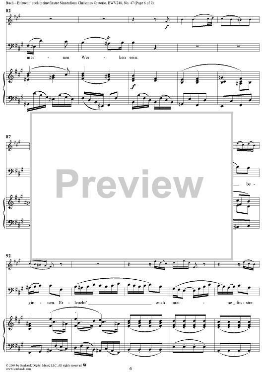 Digital Sheet Music for "Erleucht' auch meine finstre Sinnen", Aria, No. 47 from Christmas Oratorio, BWV248 - Piano Score by Johann Sebastian Bach scored for Bass, Oboe d'amore and Piano or Organ; id:303666