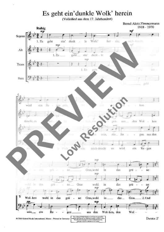 Digital Sheet Music for Es geht ein' dunkle Wolk' herein - Choral Score by Bernd Alois Zimmermann scored for Mixed Choir (satb); id:479369