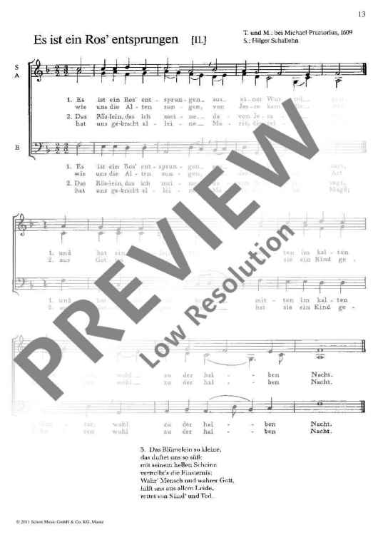 Digital Sheet Music for Es ist ein Ros entsprungen by Hilger Schallehn scored for Mixed Choir; id:478746