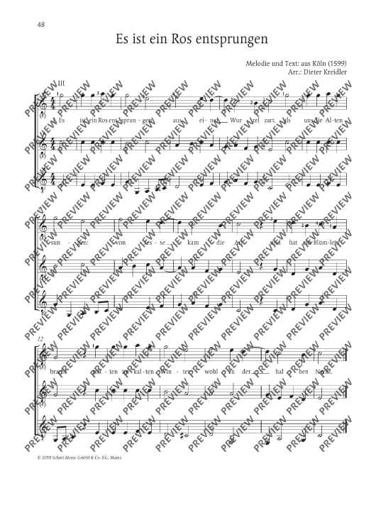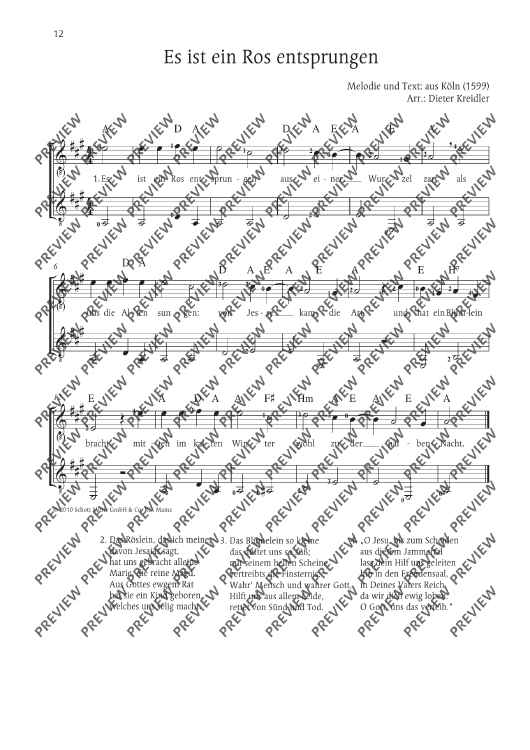 Digital Sheet Music for Es ist ein Ros entsprungen by Dieter Kreidler scored for 1-3 Guitars (melody Instruments In C Ad Lib.); id:481739