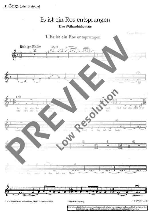 "Es ist ein Ros' entsprungen - Violin Iii/viola" Sheet Music by Cesar Bresgen