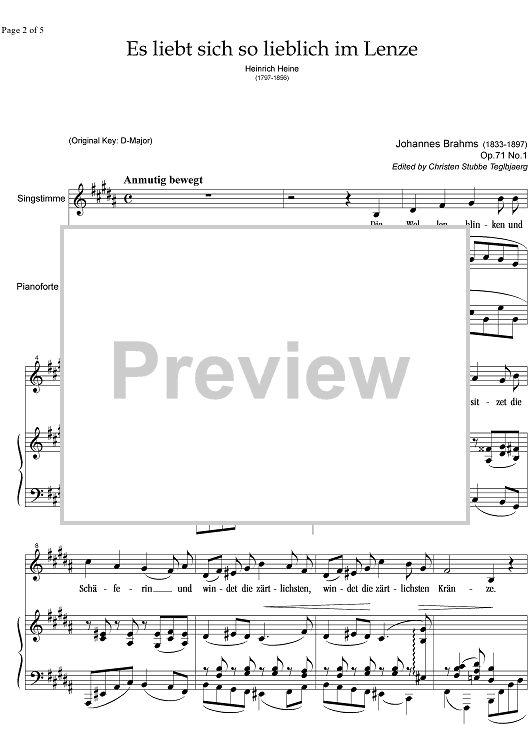 "Es liebt sich so lieblich im Lenze Op.71 No. 1" Sheet Music by Johannes Brahms