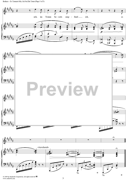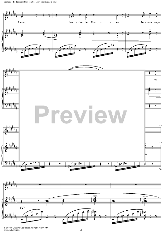 Digital Sheet Music for Es Träumte mir, ich sei dir teuer - No. 3 from "8 Lieder & Songs" - Op. 57 by Johannes Brahms scored for Voice/Piano; id:274696