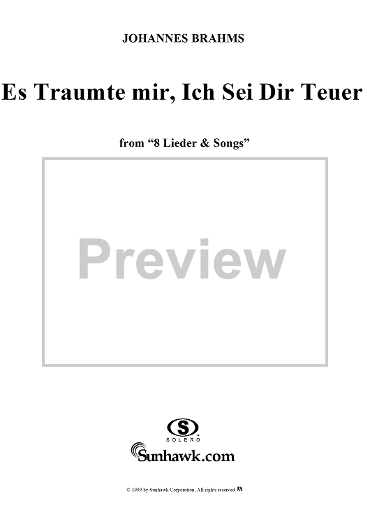 "Es Träumte mir, ich sei dir teuer - No. 3 from "8 Lieder & Songs" - Op. 57" Sheet Music by Johannes Brahms
