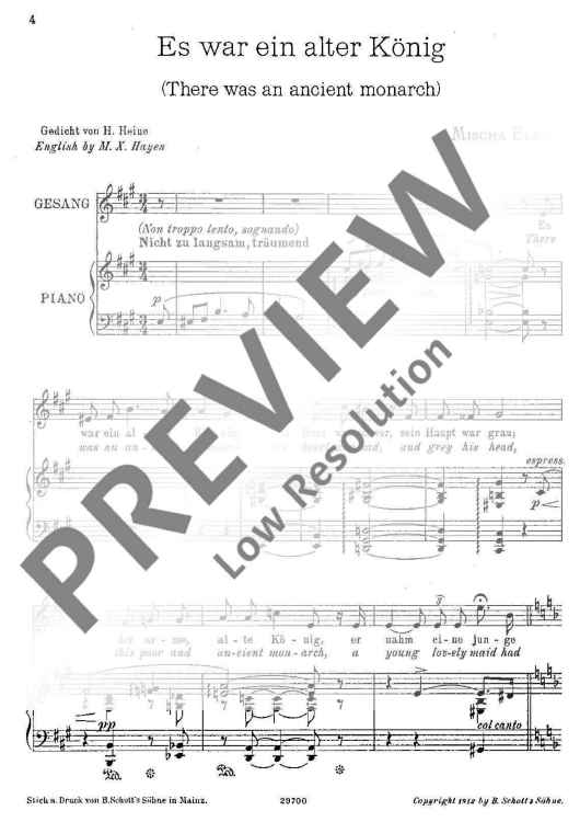 Digital Sheet Music for Es war ein alter König by Mischa Elman scored for Voice And Piano; id:488640