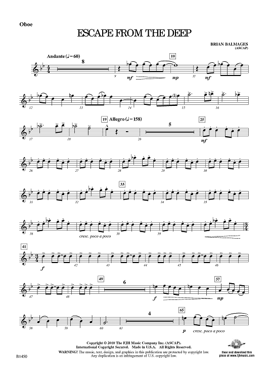 "Escape from the Deep - Oboe" Sheet Music by Brian Balmages