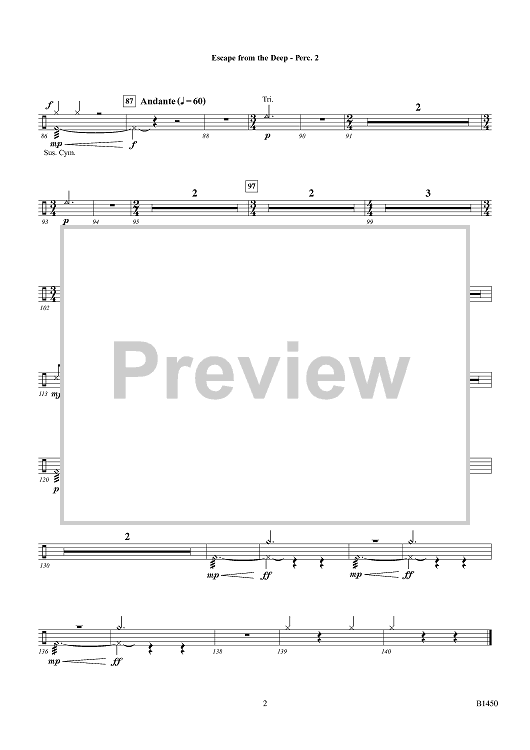 Digital Sheet Music for Escape from the Deep - Percussion 2 by Brian Balmages scored for Young Band; id:415456
