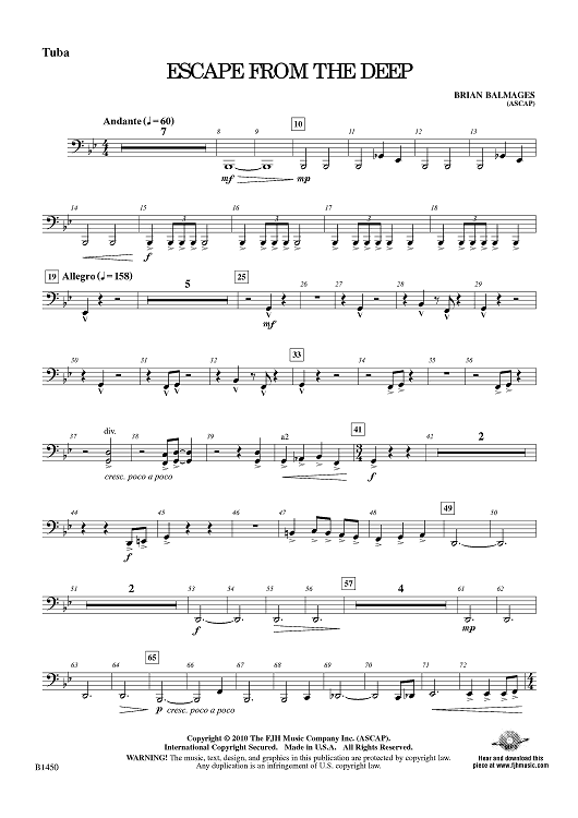 Digital Sheet Music for Escape from the Deep - Tuba by Brian Balmages scored for Young Band; id:415452