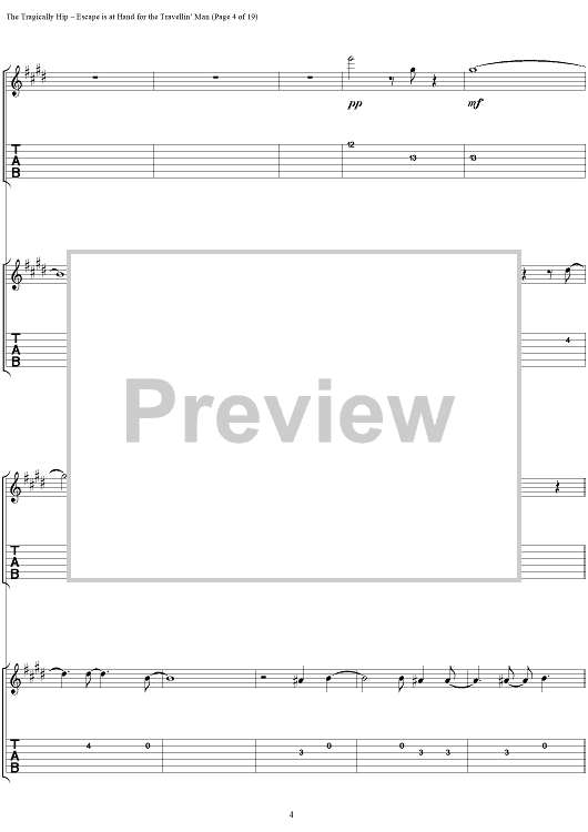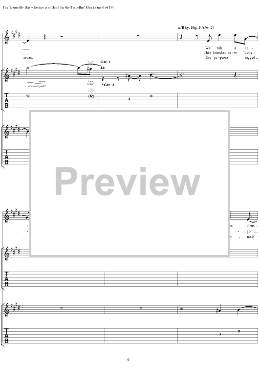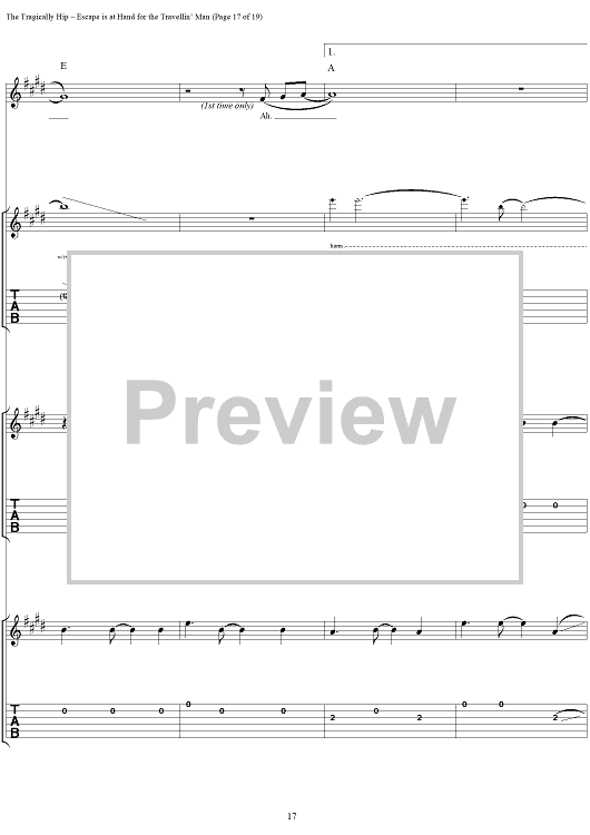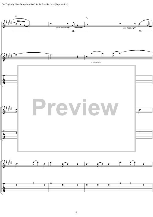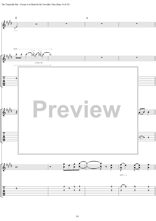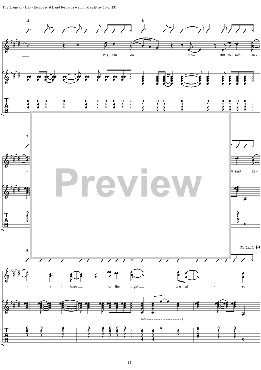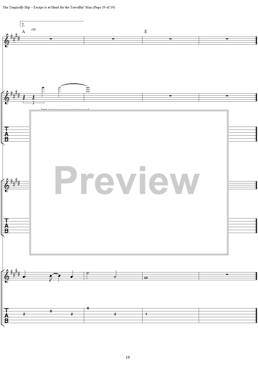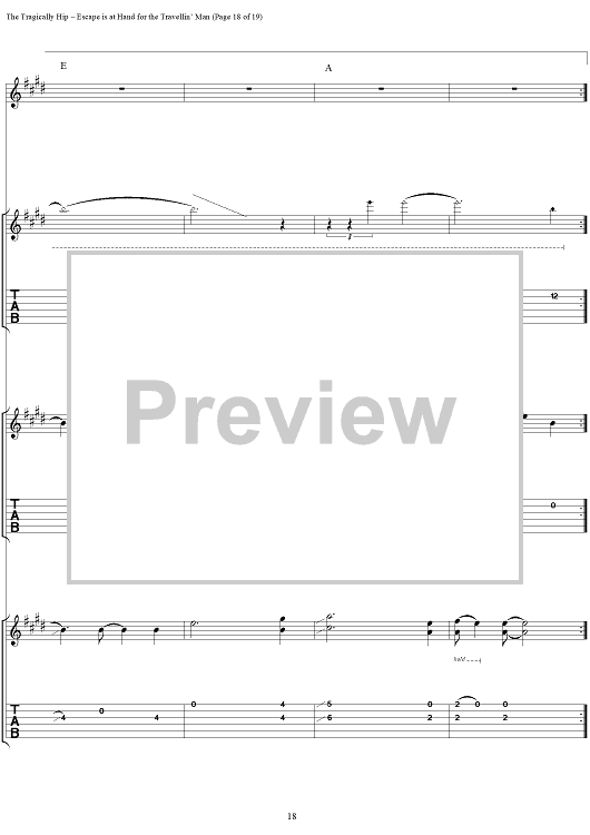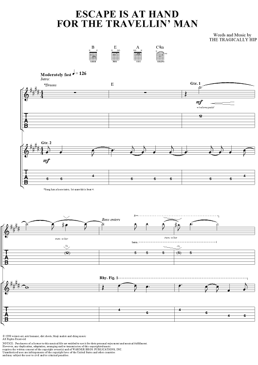 "Escape is at Hand for the Travellin' Man" Sheet Music by The Tragically Hip