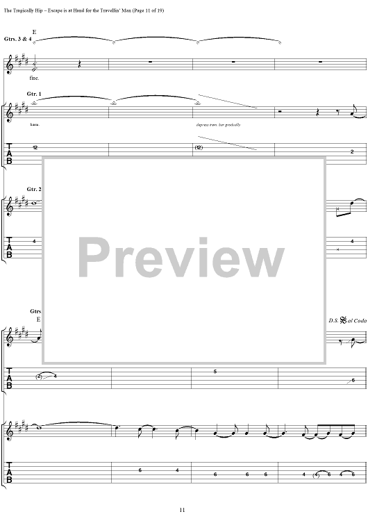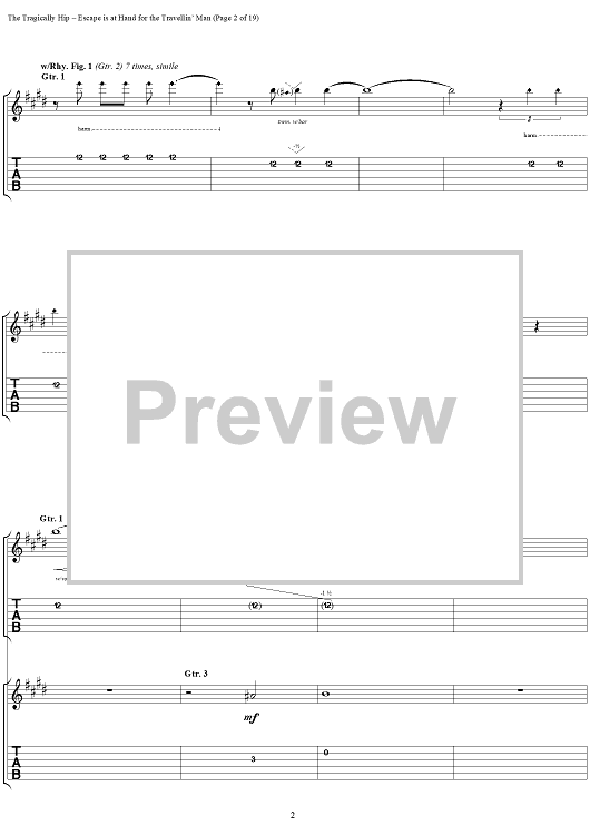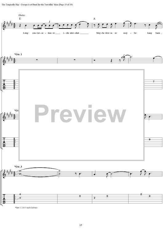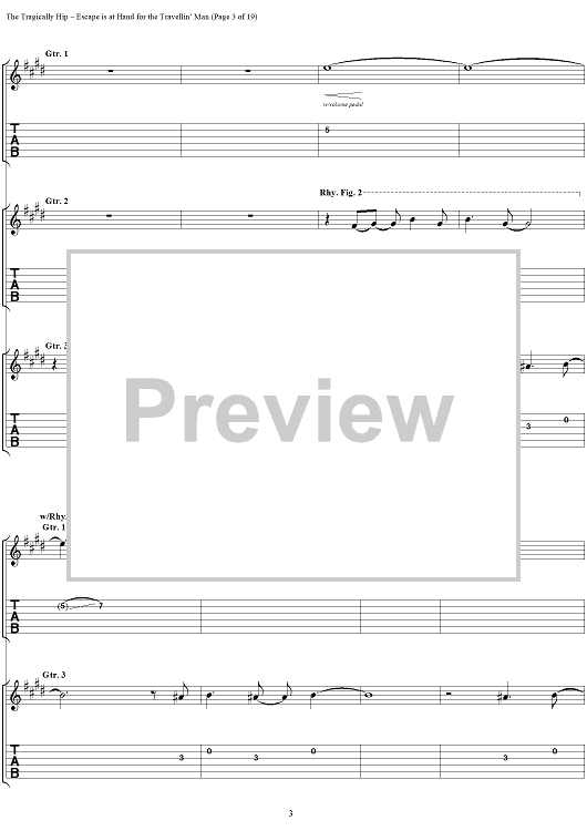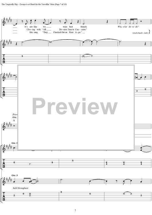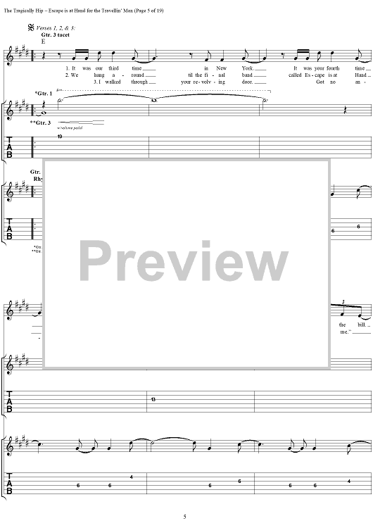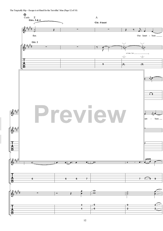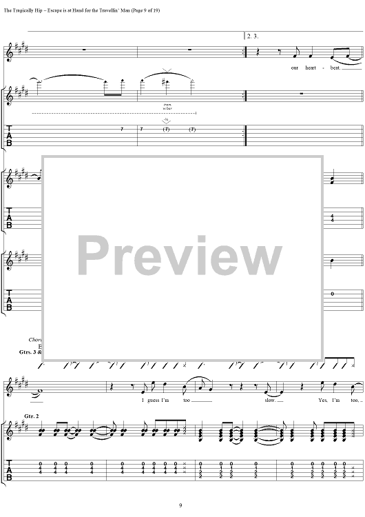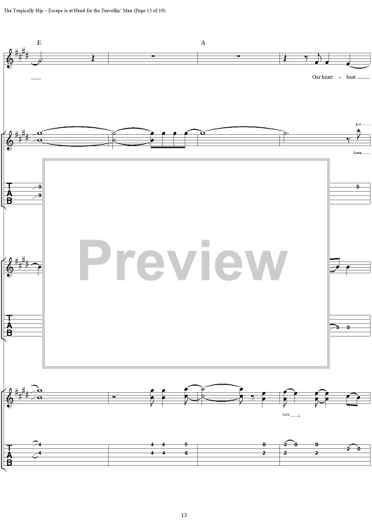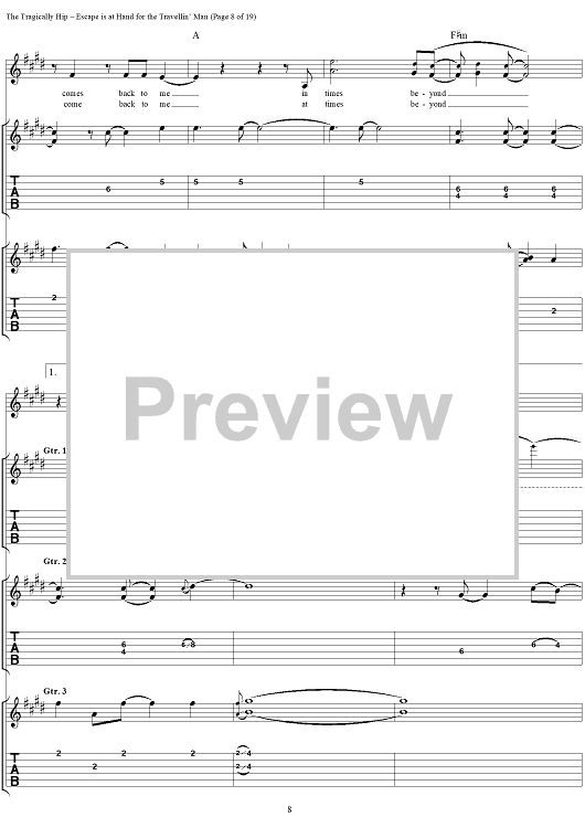 "Escape is at Hand for the Travellin' Man" Sheet Music by The Tragically Hip