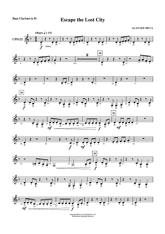 Digital Sheet Music for Escape the Lost City - Bass Clarinet in Bb by Alan Lee Silva scored for Concert Band; id:420357