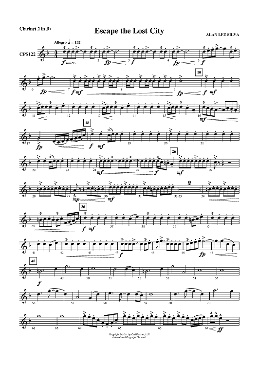 Digital Sheet Music for Escape the Lost City - Clarinet 2 in Bb by Alan Lee Silva scored for Concert Band; id:420355
