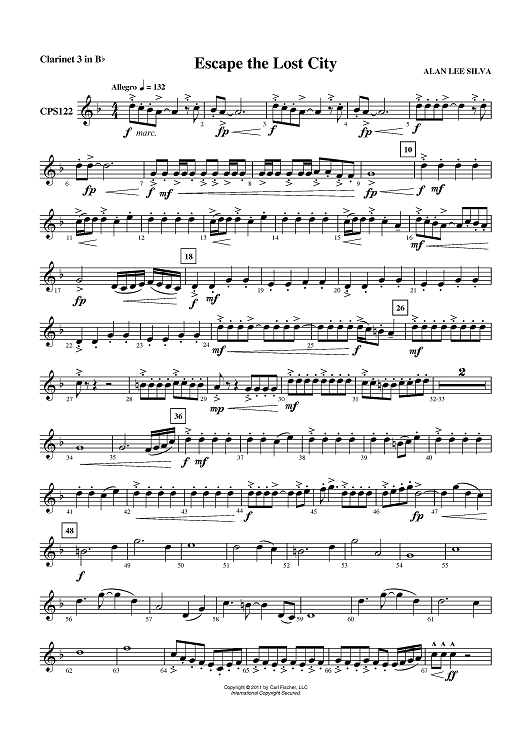 "Escape the Lost City - Clarinet 3 in Bb" Sheet Music by Alan Lee Silva
