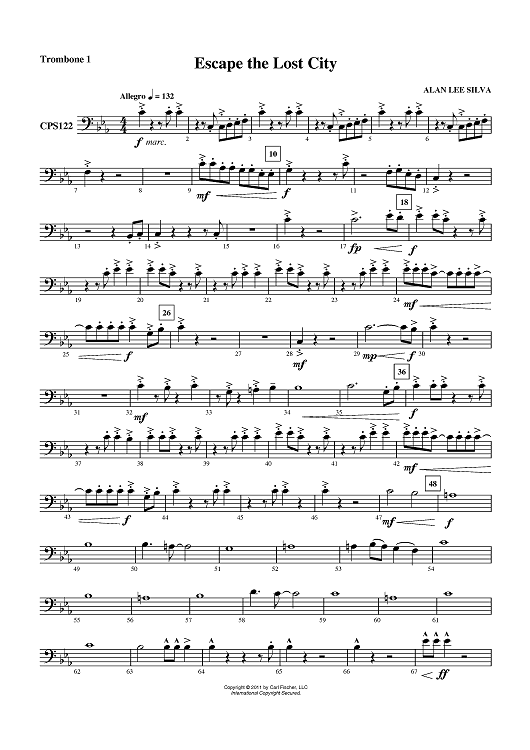 "Escape the Lost City - Trombone 1" Sheet Music by Alan Lee Silva