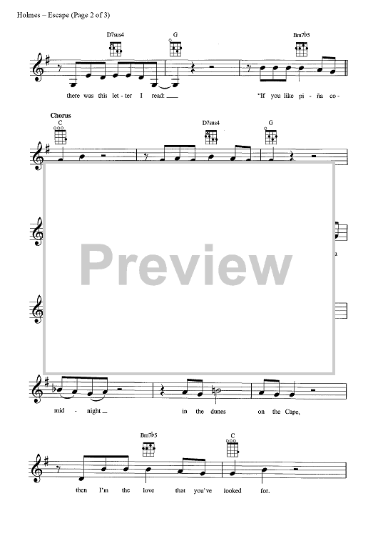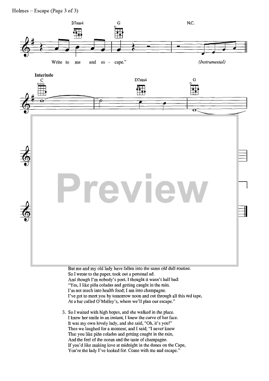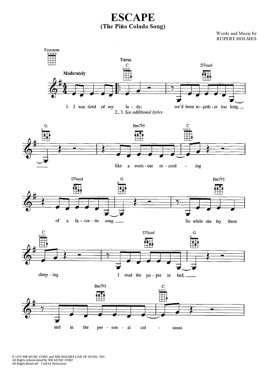 "Escape (The Piña Colada Song)" Sheet Music by Rupert Holmes