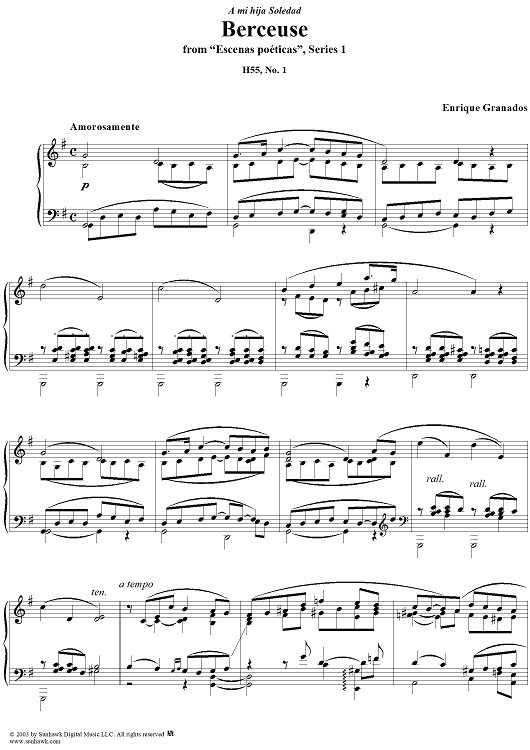 "Escenas poéticas, Series 1, No. 1: Berceuse" Sheet Music by Enrique Granados