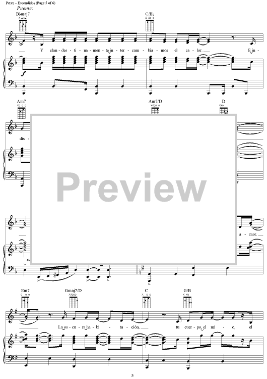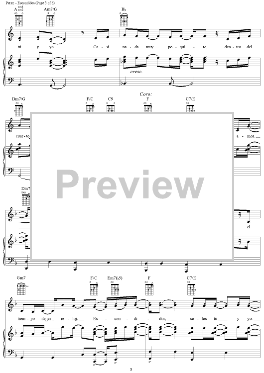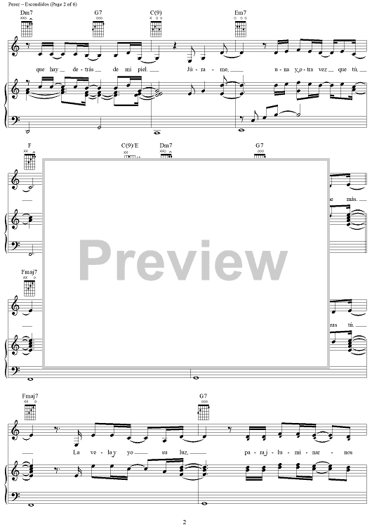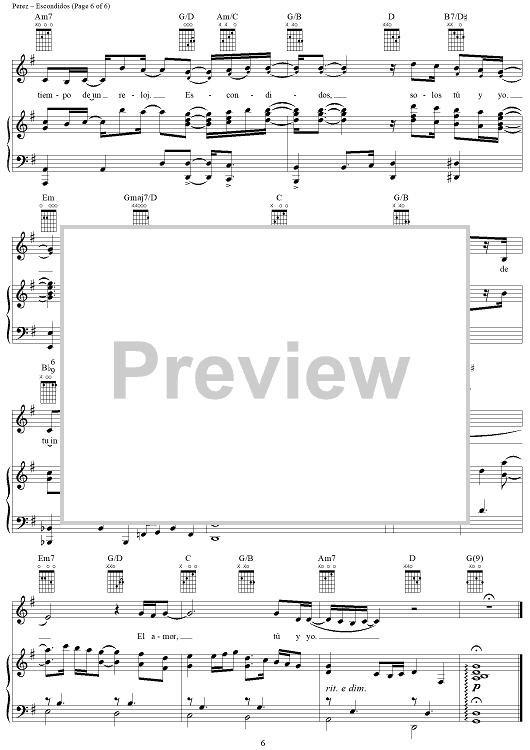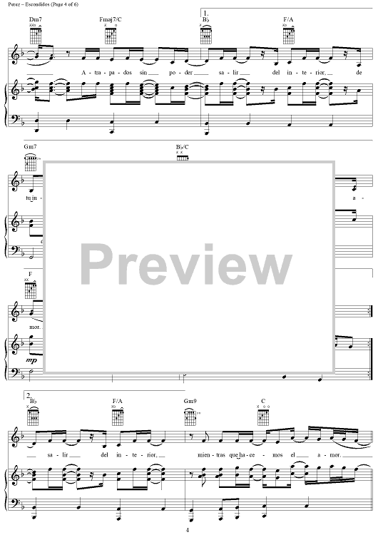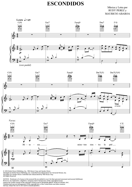 Digital Sheet Music for Escondidos by Rudy Perez, Cristian Castro, Olga Tañón, Mauricio Abaroa scored for Piano/Vocal/Chords; id:285178