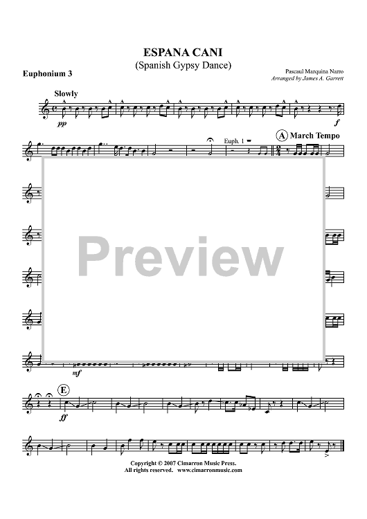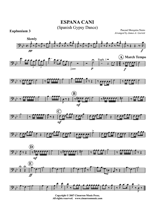 Digital Sheet Music for Espana Cani (Spanish Gypsy Dance) - Euphonium 3 BC/TC by , James Garrett, Pascaul Marquina Narro scored for Tuba Ensemble; id:416714